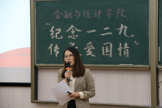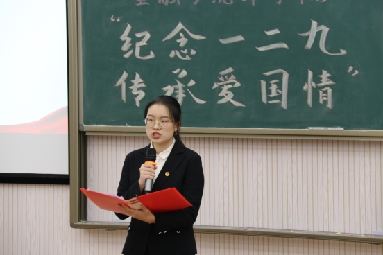 王家琪从“一二九”事件背景、事件过程、运动意义三个方面为全体师生主讲纪念一二九运动主题团课。八十六年前,面对日本帝国主义侵略,中国青年学生以满腔的热情与无畏的勇气,为捍卫民族利益与尊严而奔走呐喊;八十六年后,面对世界百年未有之大变局,新时代青年以崭新的姿态与坚定的理想,肩负起民族复兴的时代使命。与会师生纷纷表示,要牢记习近平总书记嘱托,不负青春韶华,践行爱国精神,为实现中华民族伟大复兴的中国梦贡献青春力量!