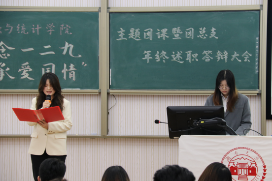 12月9日晚,伟德国际1946官网“纪念一二九 传承爱国情”主题团课暨2020-2021学年团总支年终述职答辩大会在财院校区二教101举行,线上平台同步进行。学院团委书记周斌老师,团委副书记杨晨老师,辅导员王家琪老师、张宇老师,团委学生会主要骨干及各班级团支部书记出席本次大会。大会邀请王家琪主讲主题团课,各年级团总支负责人进行工作述职。